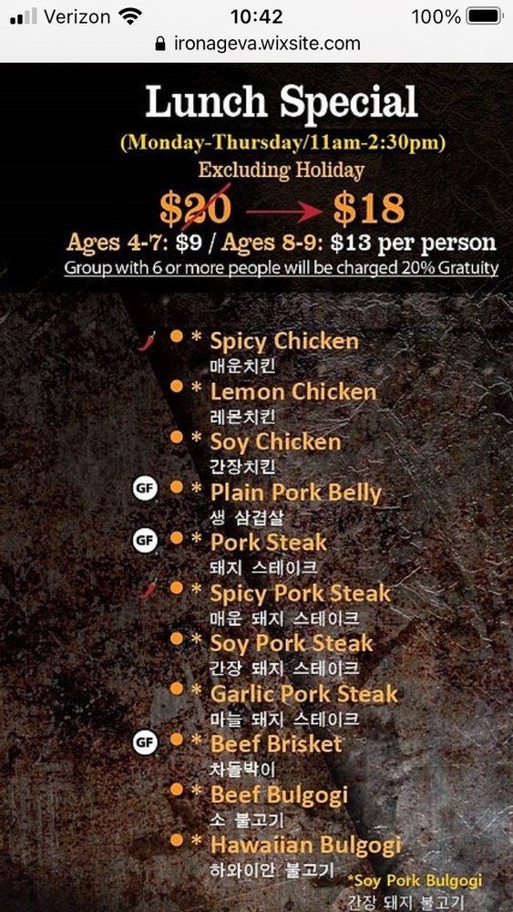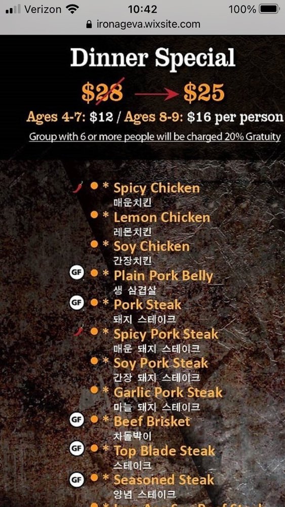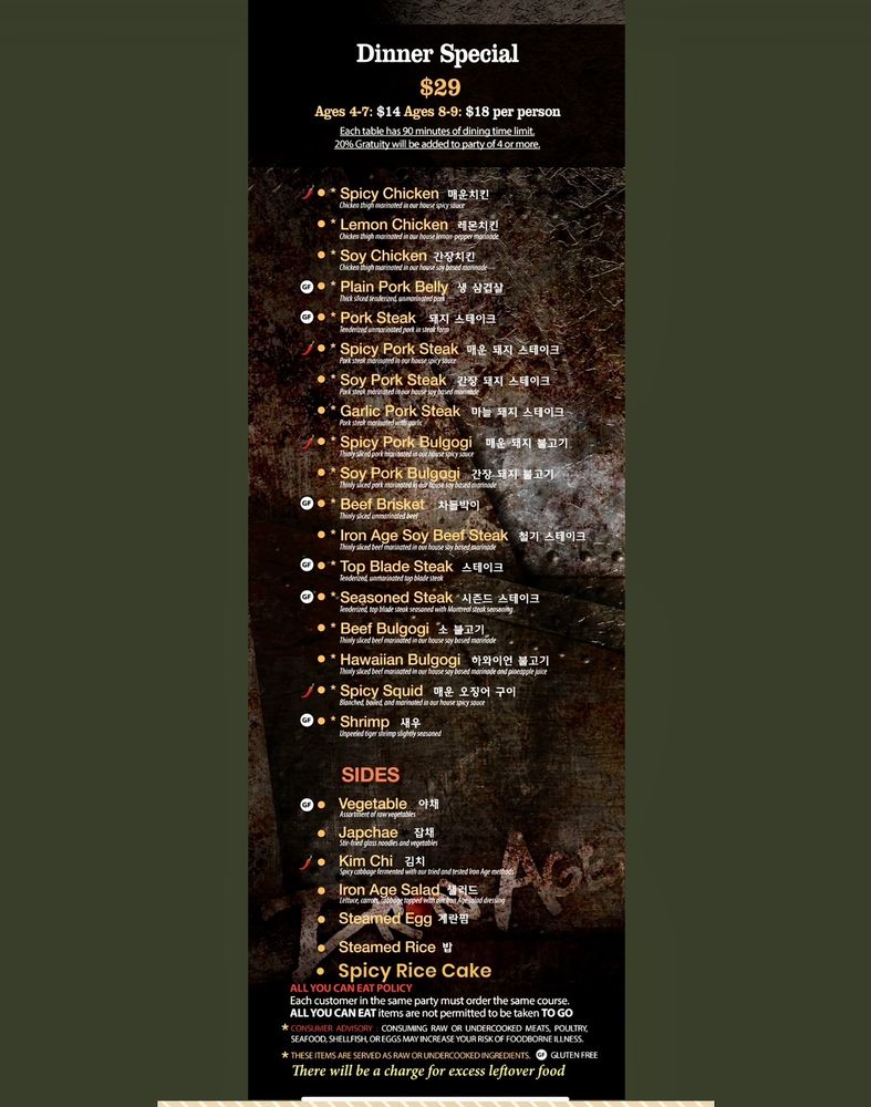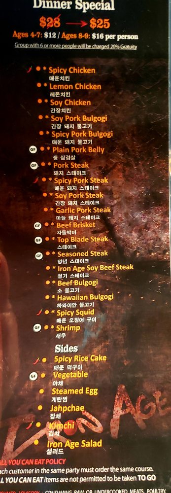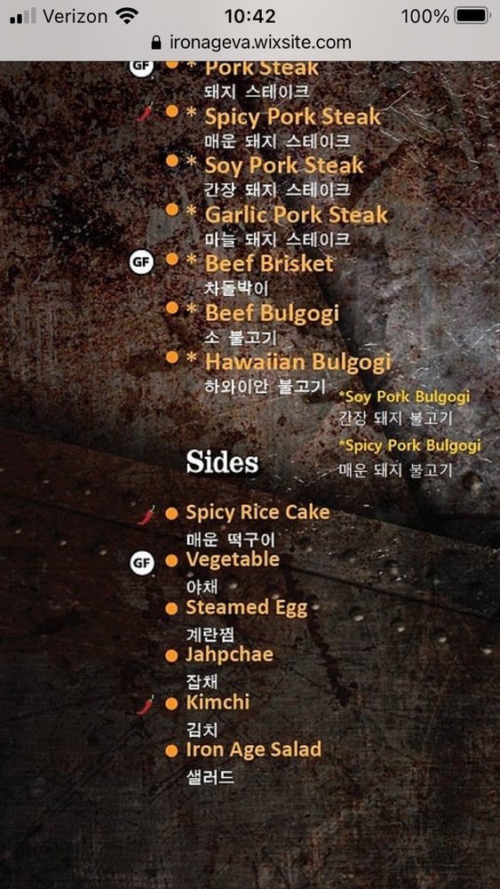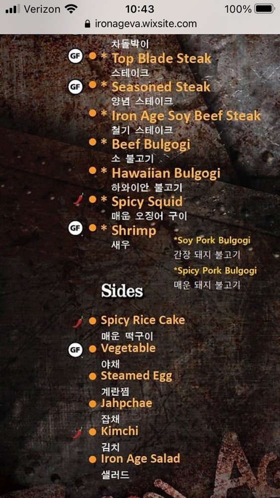 Iron Age, an Asian Fusion Korean restaurant located in Centreville, VA, offers a vibrant dining experience with its casual and trendy atmosphere. Known for its delicious beef bulgogi and sides like salad, Iron Age impresses customers with its attentive service and incredible vibe. The menu features a range of options, with standout dishes like beef brisket and Iron Age steak highly recommended by patrons. The restaurant's unique ambiance, featuring K-pop music videos and a dark setting, creates a perfect setting for gatherings with family and friends. The variety of chicken options also makes Iron Age a go-to spot for those who prefer poultry over beef or pork. With friendly and helpful staff, this establishment ensures a memorable dining experience for both first-time visitors and regulars alike.