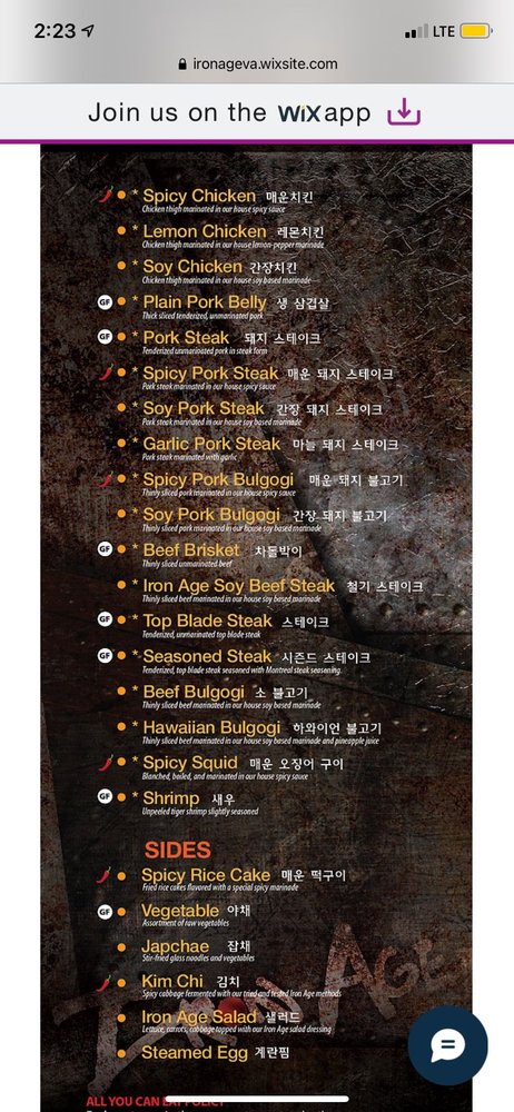 Iron Age Menu (Update 2025)